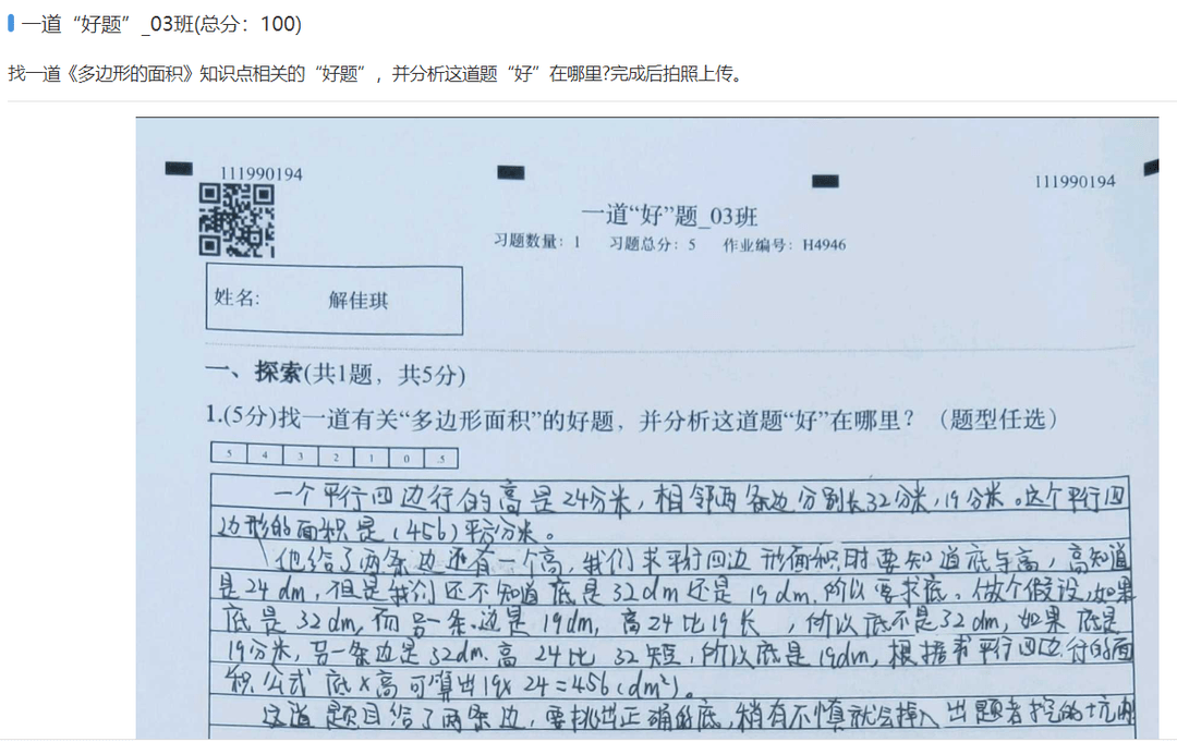 首先他们会选择一些与生活实际相关联的题目,其次是根据学生学情布置分层作业,再依据精准教学云平台的作业数据汇总易错题,给学生推荐易错题的变式题进行练习。孙青表示自己的选题标准是不能太偏,而且关注学生对知识的多种应用,比如同一个知识点、同一类型,不同的考察方式;不同知识点的同一种方法,从多个维度设计题目,帮助学生提升学习效果。
