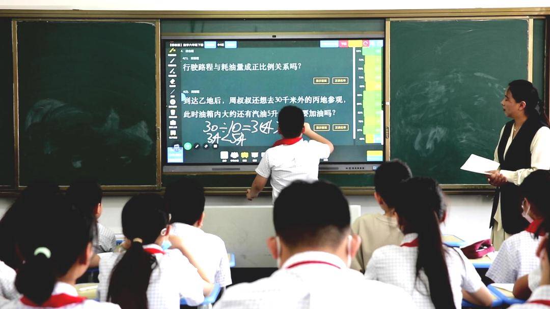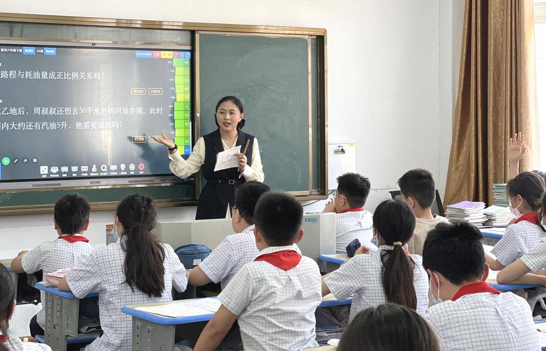 “1升汽油能跑10千米,5升汽油就能跑50千米,50千米大于30千米,周叔叔距离目的地30千米,所以他不需要加油。”这是一道关于行驶路程与耗油量的问题,李政轩同学正在跟大家讲解自己的解题思路,语言清晰,逻辑清楚,赢得班里其他同学的一阵掌声。