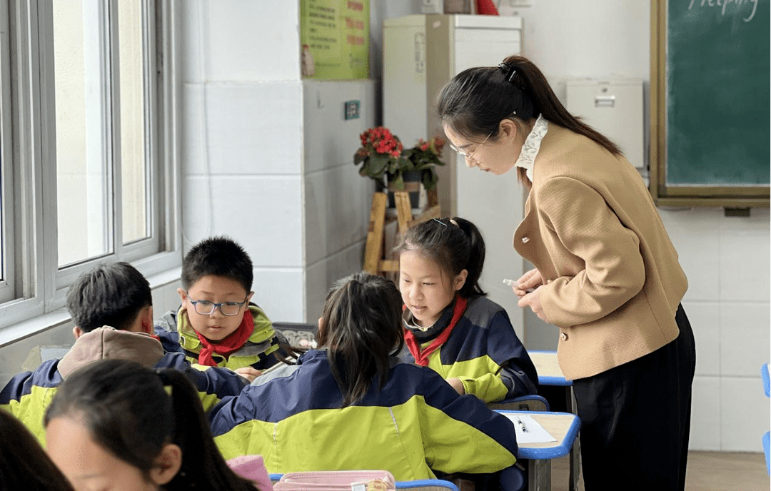 “英语学习需要多说,所以我们的课堂多侧重沟通,包括老师和学生之间,学生和学生之间,除了情景教学,我们也会设计小组合作。”比如五年级《Helping our parents》,是关于帮助父母做家务的语法课,她让学生小组合作,看图问答,还有三年级的《How old are you?》,她鼓励学生询问小组成员的年龄,然后结合课文内容,推荐适合同伴年龄段的玩具,并陈述理由。张杭和英语组的老师们还尝试将信息技术融入课堂,应用精准教学云平台,为学生推送适合的资源、题目,帮助学生实现个性化练习。在阅读课上,他们筛选优质的绘本资源,结合课本内容教学;在语法课上,他们通过预习单、课堂检测,收集学生作业数据,精准了解学生学情。