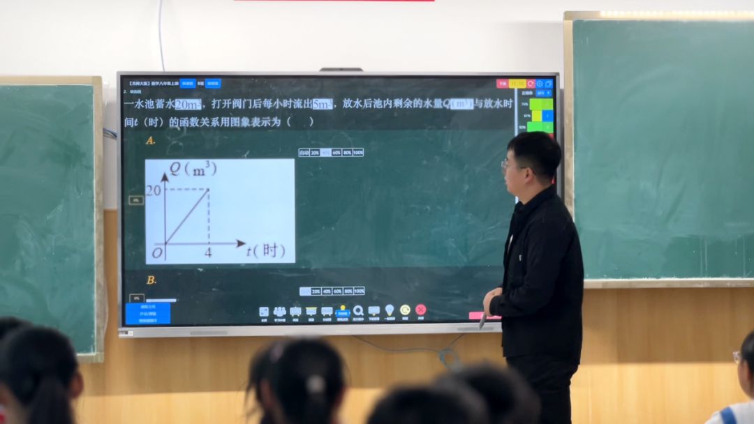 在学校数字转型的进程中,张岩居和刘琪凭借卓越的教学能力和创新的教学理念,脱颖而出,成为数字教学的佼佼者。张岩居是数学教师,注重课堂的逻辑性和科学性,以清晰、严谨的教学风格,引领学生探索数学的奥秘。“精准教学云平台,数学学科应用更多的是备课和作业,老师可以从平台上获取相应的课件教案,去年新课标落地后,平台上教案和课件给我们提供了很好的参考案例,我们在后台看到每个学生练习题目的正确率以及完成情况,可以针对性地布置靶向作业,对于提升学生素养有很大的帮助。”差异化作业针对学生个性化需求精准发力,张岩居也能更加精准地为学生答疑解惑。