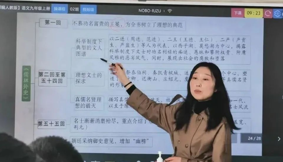 初四语文教师王梅讲授了《儒林外史》专题复习—表现手法,王老师通过小组合作,熟练运用精准教学云平台,呈现了一堂有思考,精彩纷呈的名著交流课。课后,语文教研员赵传英老师对这节课点评,认为王老师在教学中既有创新,又求真务实,扎实进行读书活动让老师学生学会了思考;要求教师在今后的语文教学中多要关注学生、关心学生、关爱学生,让学生真正爱上语文。