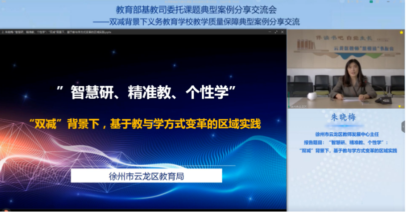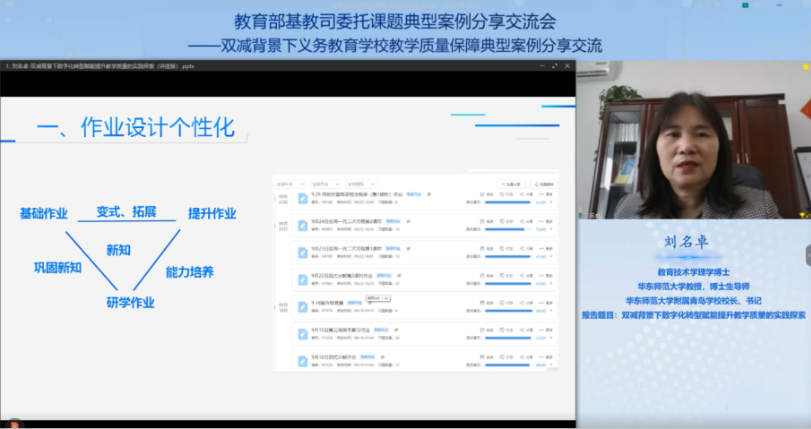 近日,由清华大学教育研究院、呼和浩特市教育局主办的“双减”背景下义务教育学校教学质量保障典型案例线上交流分享会成功举行,进一步推动了《双减背景下义务教育学校教学质量保障研究》课题的研究工作,加强了典型经验的推广。其中,华东师范大学附属青岛学校校长、书记刘名卓分享题为《“双减”背景下数字化转型赋能提升教学质量的实践探索》的典型案例;徐州市云龙区教师发展中心主任朱晓梅分享题为《智慧研、精准教、个性学,“双减”背景下,基于教与学方式变革的区本实践》的典型案例。