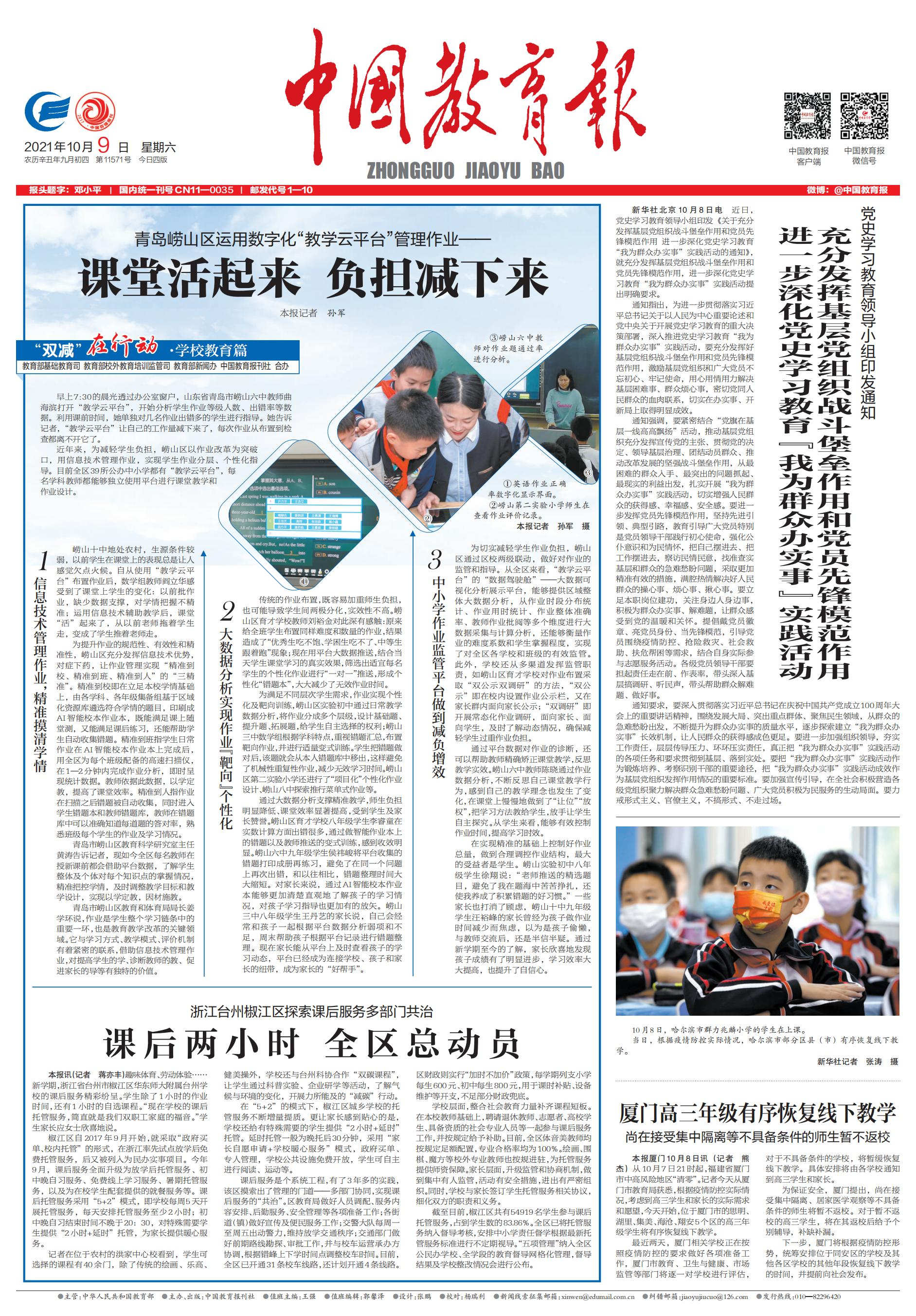 中国教育报对崂山区应用十六进制精准教学平台优化作业管理的案例进行报道。