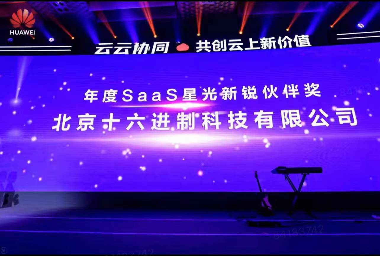 12月29日,以“云云协同,共创云上新价值”为主题的华为云创新峰会在北京举行,北京十六进制科技有限公司荣获年度SaaS星光新锐伙伴奖,公司总裁徐国贤受邀参加会议。