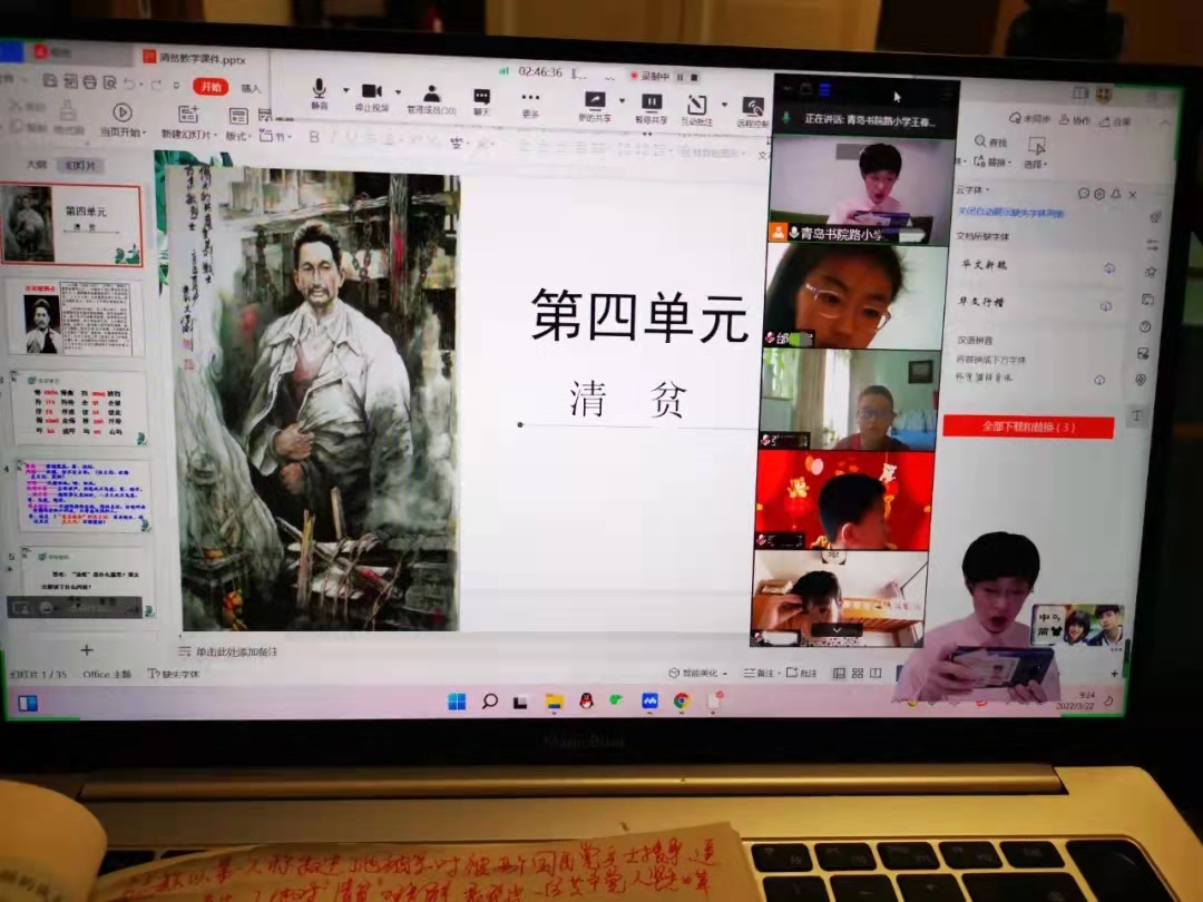 青岛书院路小学“云课堂” 王春蕊老师讲授语文课《清贫》