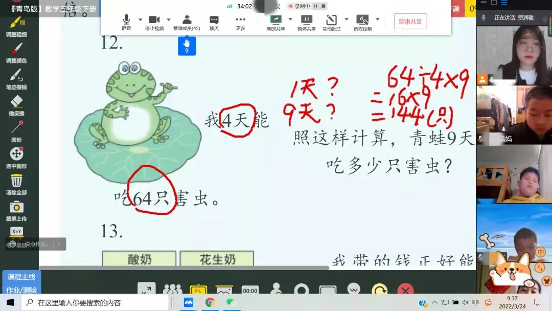 青岛书院路小学“云课堂” 雷文玉老师为三年级学生讲授数学知识