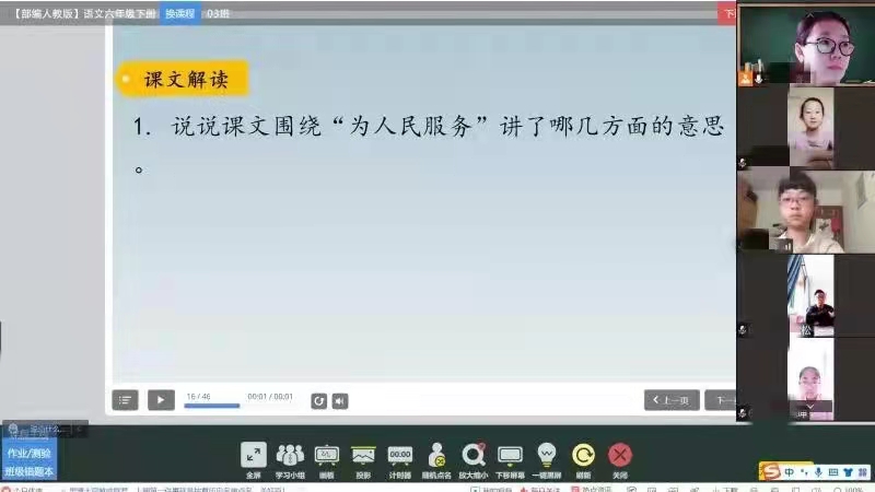 枣山路小学“云课堂” 张文老师组织学生线上分组讨论